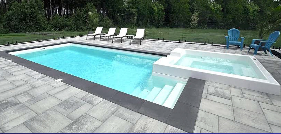 The NEW Psi fiberglass inground pool, offer you a spa and a pool, but packaged in a compact contemporary design. Choose between relaxing to the sound of the spa’s integrated waterfall or having fun in the pool area.